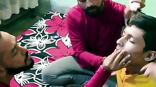 Chubby Daddy And 2 Hot Twinks Jerking And Kissing